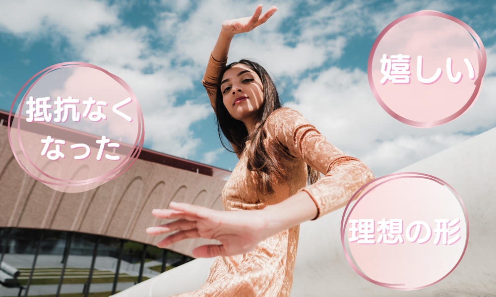 細くなった、気にならなくなった、足出せた、嬉しかった、抵抗なくなった、理想の形