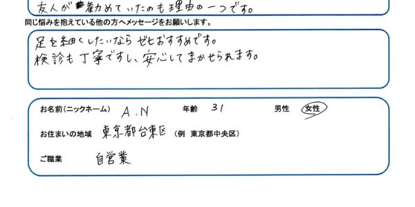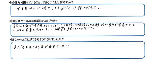 足やせを体験した女性の喜びの声の一部をご紹介しますね。